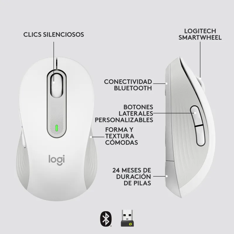 Ratón Logitech Signature M650 Blanco Ratón Bluetooth para Manos Pequeñas a Medianas