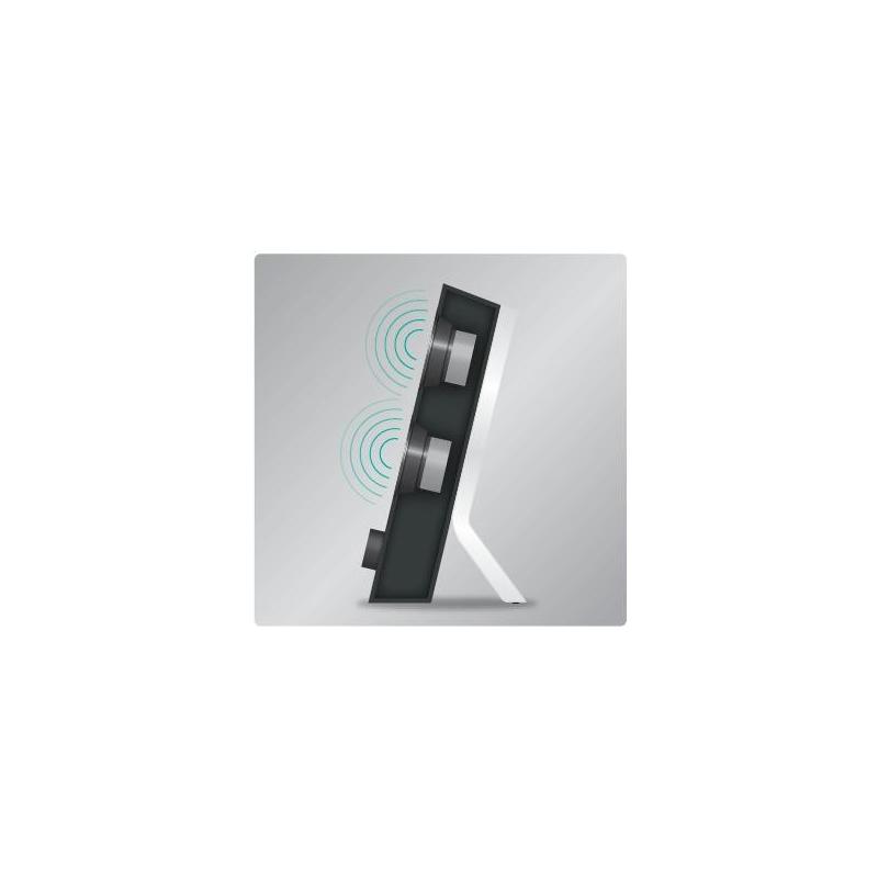 - Sonido Estéreo Pleno con Graves Ajustables : Con 10 vatios de potencia de pico cada altavoz tiene un transductor activo para audio de gama completa, y un radiador pasivo para extensión de graves