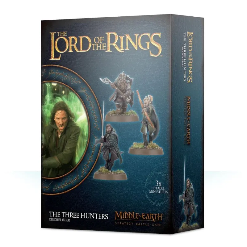El kit incluye tres miniaturas de héroe: Aragorn, Legolas y Gimli, representando su etapa como cazadores tras la disolución de la Comunidad.
