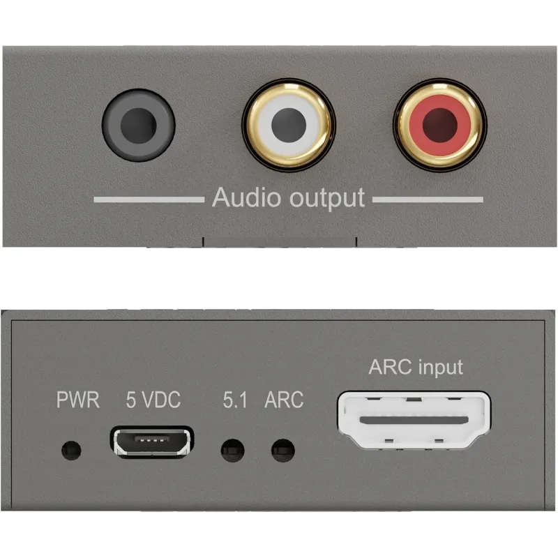 Sirve para extraer el audio que el televisor entrega por HDMI ARC y convertirlo a salidas analógicas: RCA estéreo (L/R) y mini-jack de 3,5 mm.