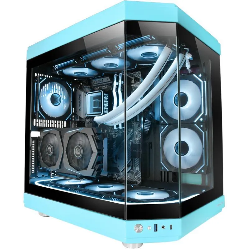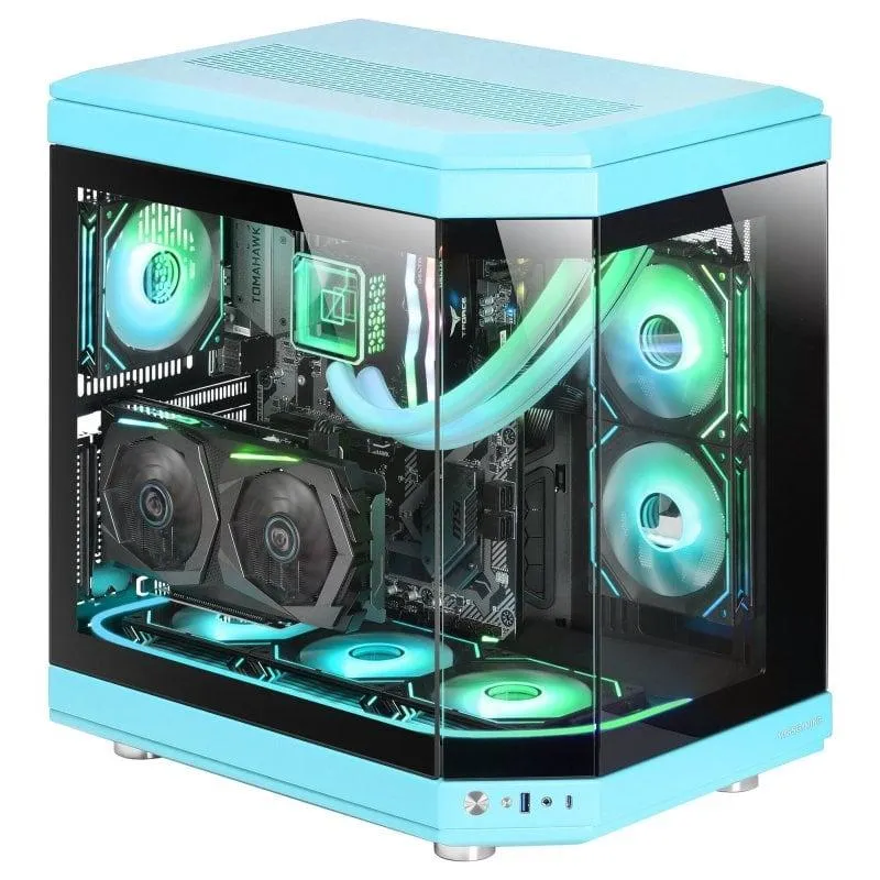 DISEÑO QUE INSPIRA: Descubre la elegancia en la robustez, la sofisticación en el detalle. Un chasis en azul profundo, que se alza como una obra de arte tecnológica, ensamblando en su estructura hasta las tarjetas madre más exigentes: ATX, micro ATX, Mini-ITX. La delicadeza del vidrio templado en sus paneles laterales no solo revela el interior de la máquina, sino que transforma el hardware en una exposición de ingeniería y diseño. Con una ventana lateral que seduce, cada componente se convierte en parte de un espectáculo visual, donde la gestión de cables se oculta con maestría, permitiendo que la estética y la funcionalidad se encuentren en perfecta armonía.