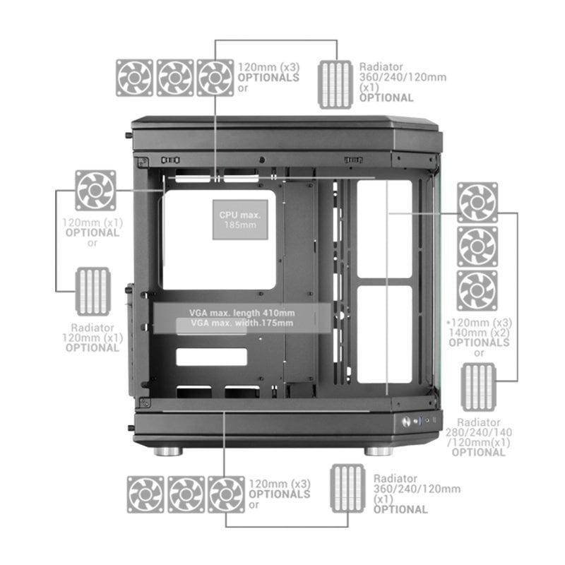 - Tamaños compatibles con el radiador lateral: 120,140,240,280 mm