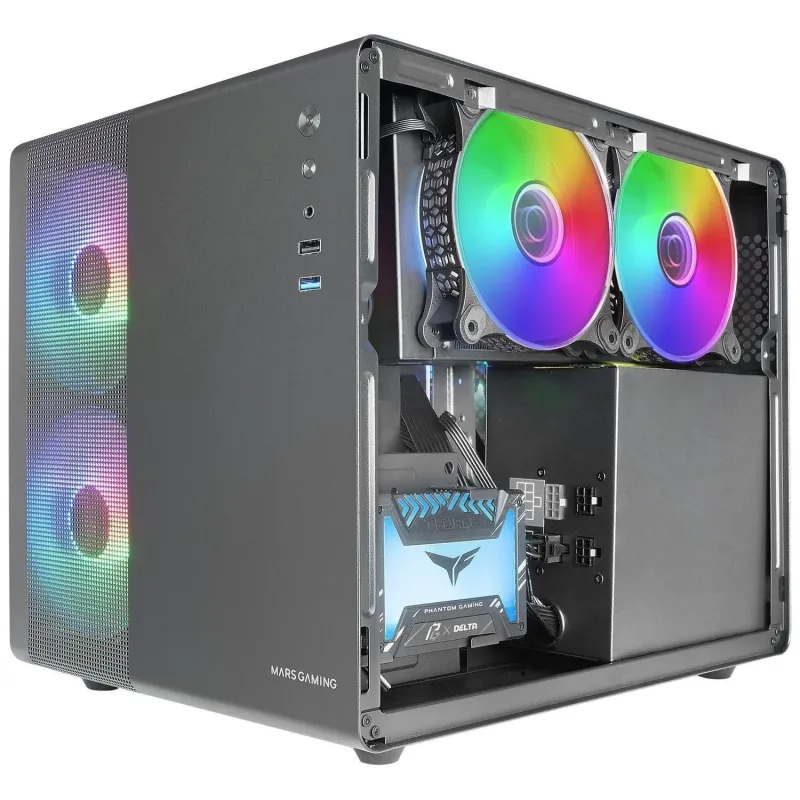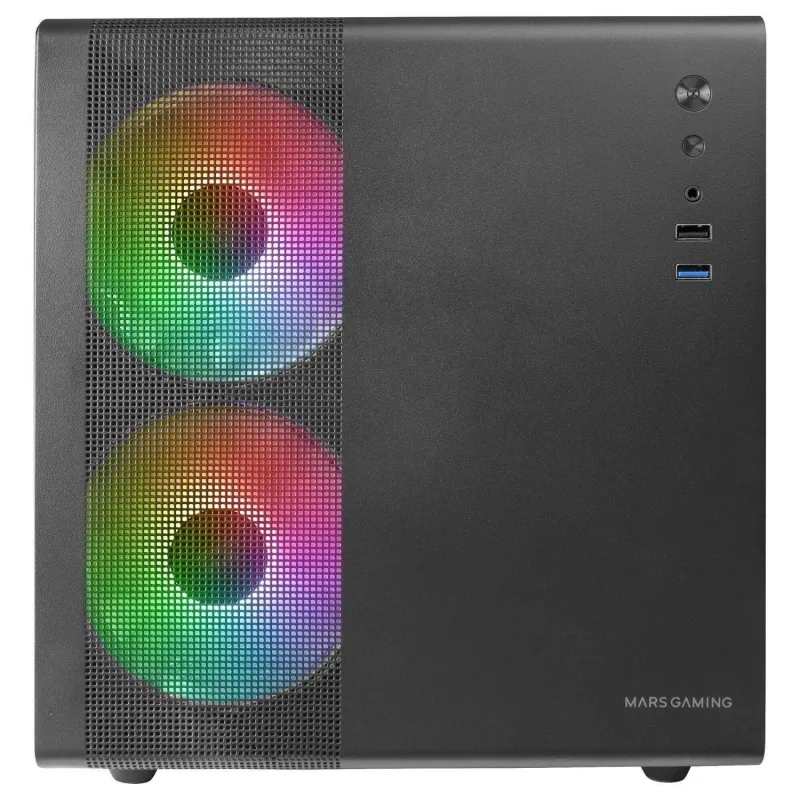 Mini Torre Mars Gaming MC-400 FRGB formato MicroATX y Mini-ITX, Cristal Templado conexión USB 3.0, color Negra