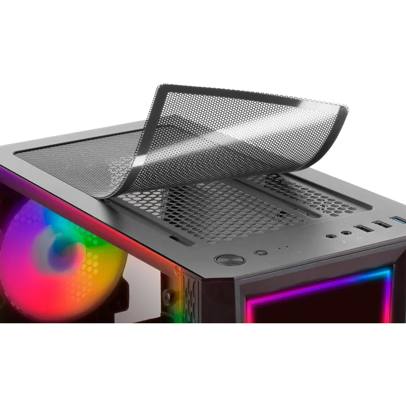 Descubre la elegancia del diseño en su máxima expresión con nuestra torre PC en un sofisticado color negro, fabricada con materiales de alta calidad como acrílico y vidrio templado. Su formato Midi Tower es compatible con diversas formas de factor de tarjeta madre, incluyendo ATX, micro ATX y Mini-ITX, ofreciendo así versatilidad para tus necesidades de construcción. Con una ventana lateral y iluminación incorporada, proporciona una experiencia visual única y moderna.