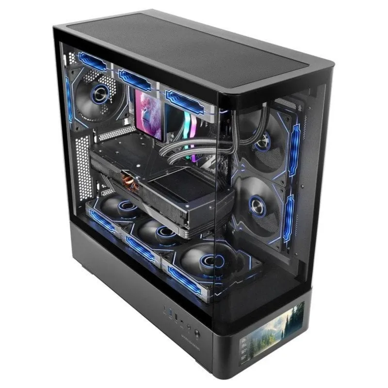 Torre Caja para PC Mars Gaming MC-LCDPRO Negra con pantalla IPS 7.2 pulgadas, soporte refrigeración líquida 360 mm y diseño con vidrio templado