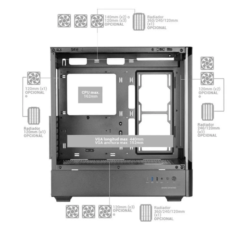 - Diámetro de ventiladores inferiores secundarios soportados: 120 mm