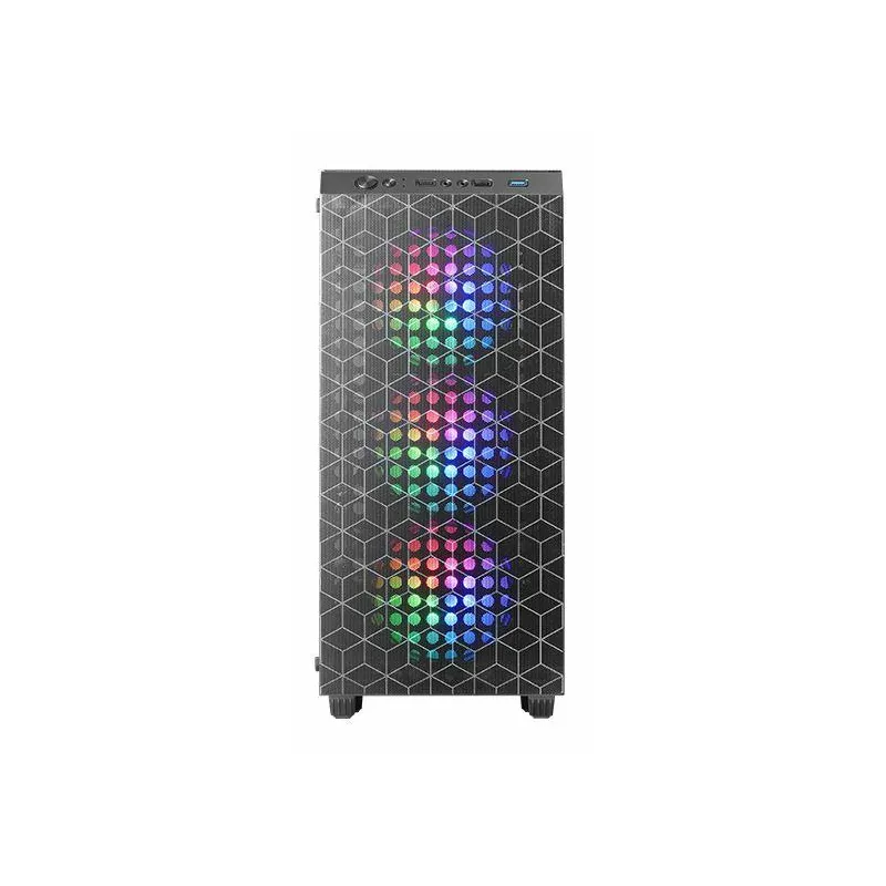 Descubre la elegancia y funcionalidad del gabinete de PC Midi Tower en un sofisticado color negro, ideal para los entusiastas del juego. Compatible con una amplia gama de tarjetas madre, incluyendo ATX, micro ATX y Mini-ITX, este gabinete ofrece una versatilidad incomparable. Disfruta de una experiencia visual única gracias a su ventana lateral y iluminación multicolor en los ventiladores, además de paneles de vidrio templado que destacan su diseño moderno.