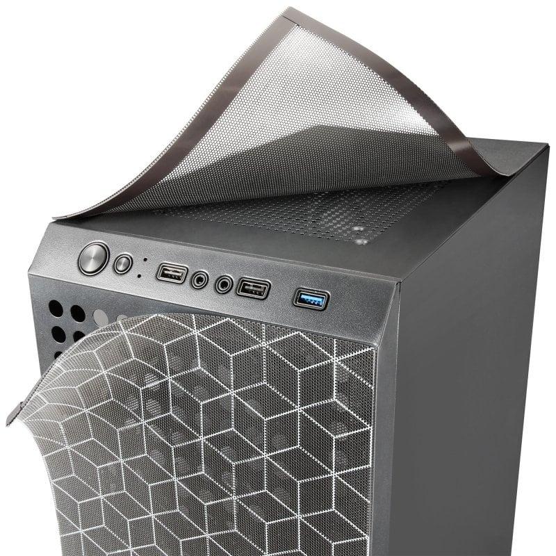 DOBLE REJILLA MAGNÉTICA: La caja MC-MAG integra una doble rejilla magnética con un diseño impresionante de sombras geométricas, donde la luz de los ventiladores se filtra a través de ellas, creando un efecto visual cautivador. Estas rejillas, ubicadas en los paneles frontal y superior, aseguran una ventilación sobresaliente, y se complementan con un filtro inferior extraíble que facilita el mantenimiento. Con su innovador diseño, la MC-MAG ofrece dos opciones de personalización para el panel frontal: escoge entre incorporar la rejilla magnética con patrón geométrico o el innovador diseño aerodinámico perforado de la caja, ambos diseñados para optimizar la circulación del aire.