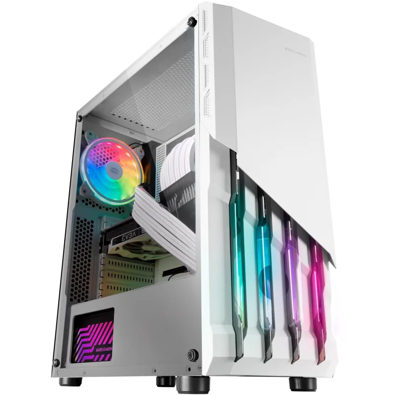Torre Mars Gaming MC-X2 FRGB Cristal Templado USB 3.0 6 Ventiladores Soportados 2 Ventiladores Instalados Frontal y Trasero Blanca