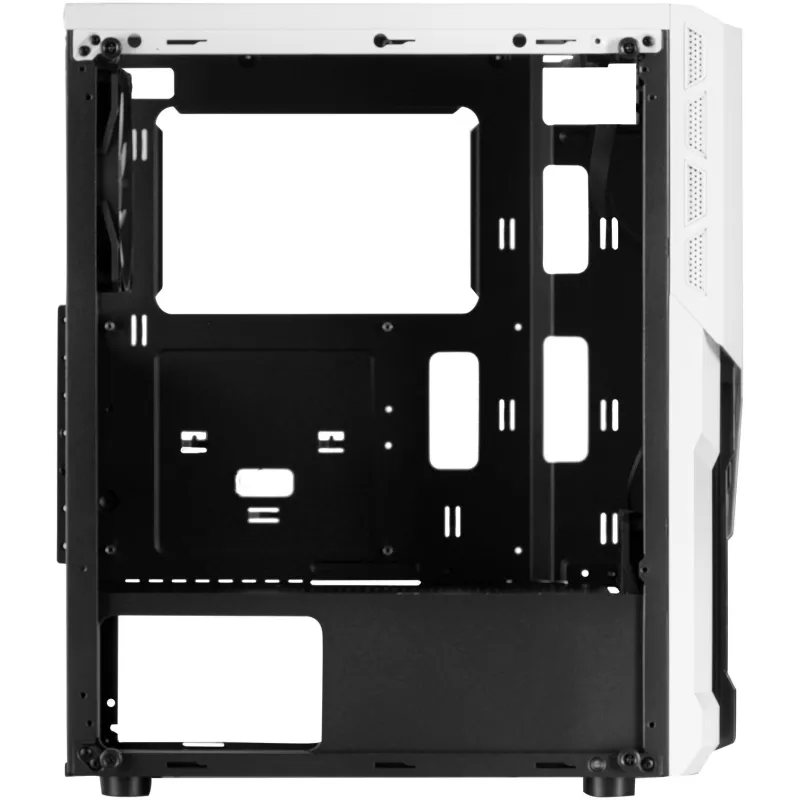 Este PC de torre en color blanco ofrece un diseño robusto y versátil, compatible con las formas de factor de tarjeta madre ATX, micro ATX y Mini-ITX. Cuenta con 2 puertos de 3.5" y 3 bahías de 2.5" para almacenamiento, además de 7 ranuras de expansión. Su ventana lateral y la iluminación integrada permiten una personalización visual atractiva, mientras que soporta una altura máxima de la CPU de 15,8 cm y una longitud máxima de la tarjeta gráfica de 31,7 cm.