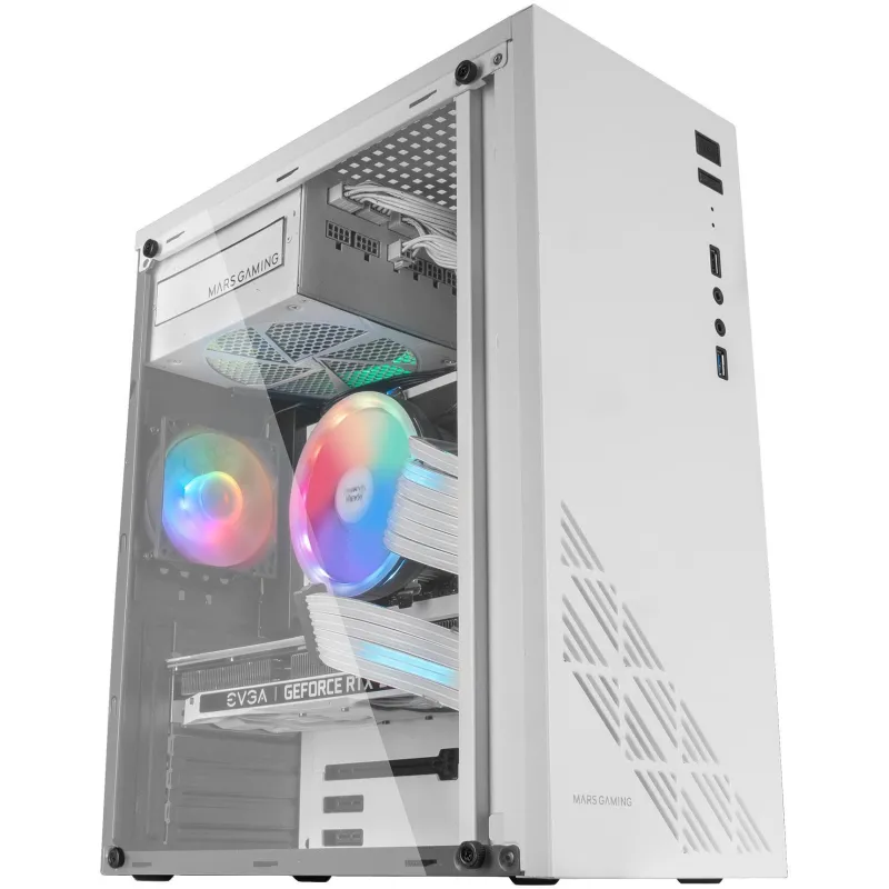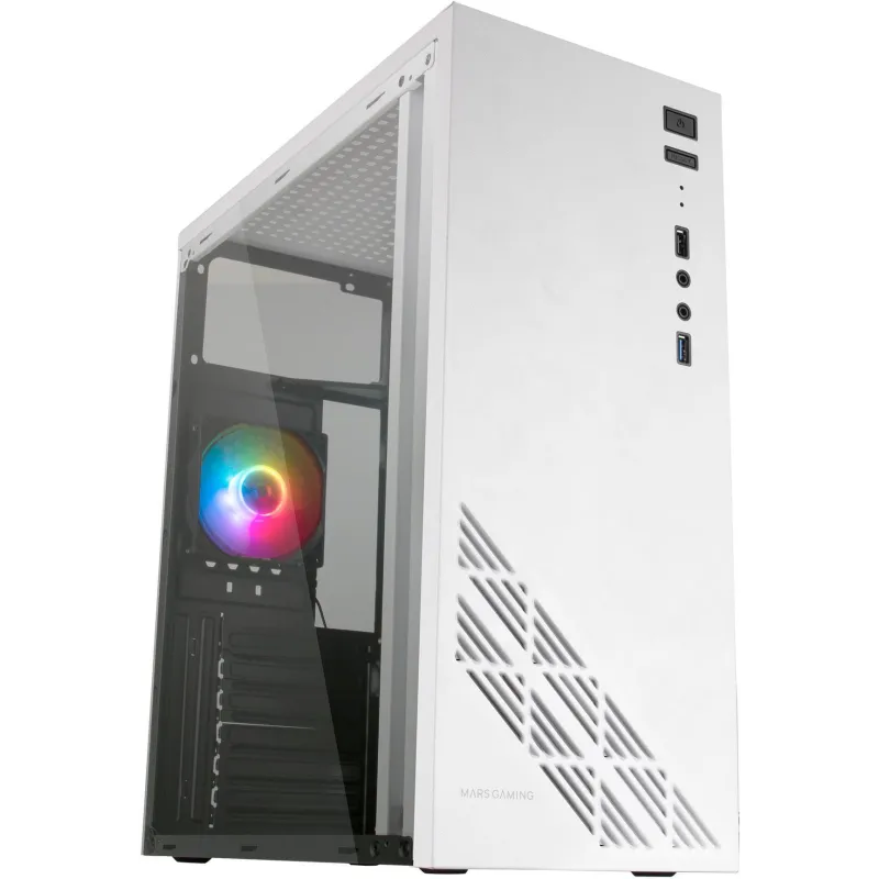 Torre Mars Gaming MC100 Cristal Acrílico USB 3.0 FRGB 2 Ventiladores Soportados Sin Ventiladores Instalados Blanco