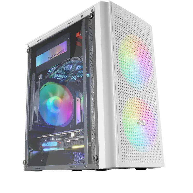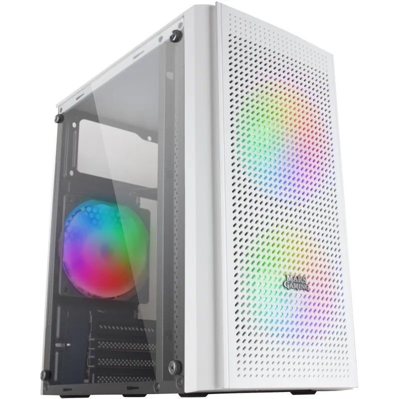 Torre Mars Gaming MC300 con formato micro-ATX y mini-ITX, 2 Ventiladores frontales de 120mm, color Blanco