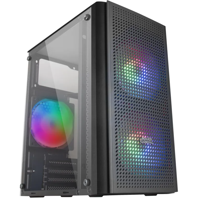 ILUMINACIÓN RGB GAMING AVANZADA: La ventilación triple de la MC300 cuenta con un sistema de iluminación Fixed RGB que proporciona a tu setup un flujo constante de color, elevando la estética de tu equipo al máximo. El frontal de diseño Mesh potencia aún más su aspecto, combinando a la perfección refrigeración e iluminación.