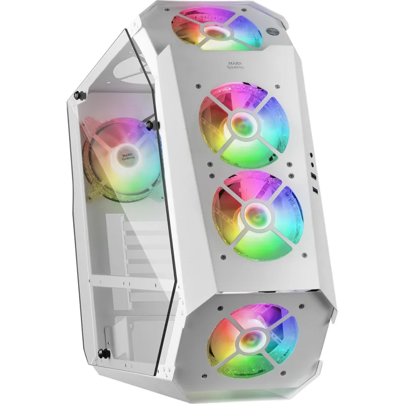 Torre Mars Gaming MC51 Cristal Templado USB 3.0 7 Ventiladores Soportados 4 Ventiladores Frontales Instalados y 1 Ventilador Trasero Instalado Blanca