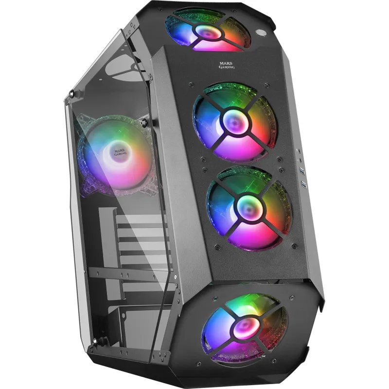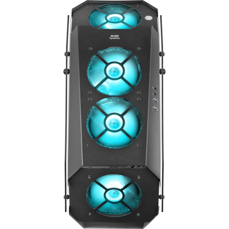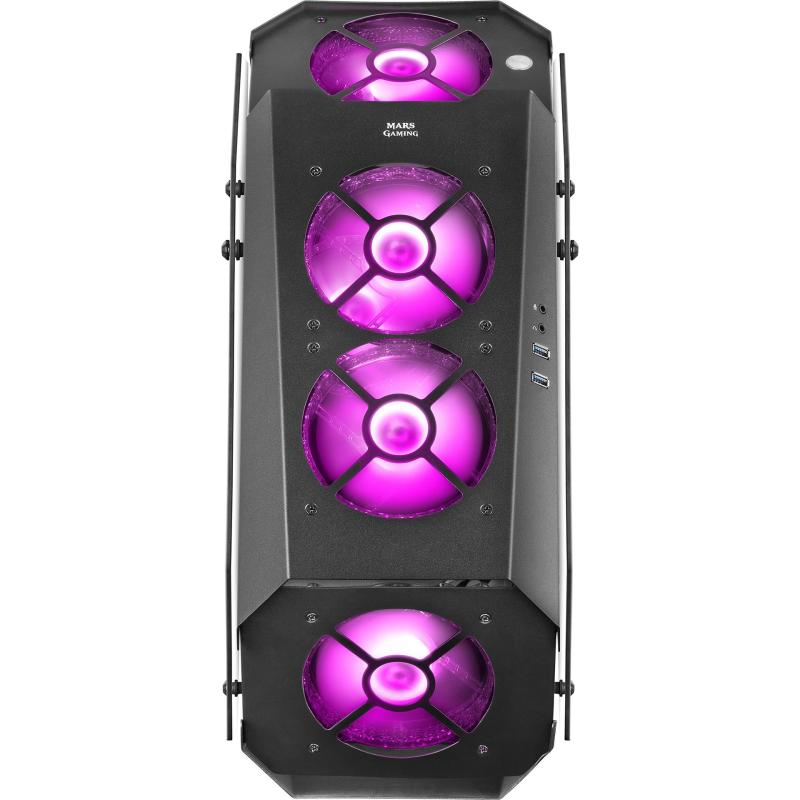 Torre Mars Gaming MC51 Cristal Templado USB 3.0 7 Ventiladores Soportados 4 Ventiladores Frontales Instalados y 1 Ventilador Trasero Instalado Negra