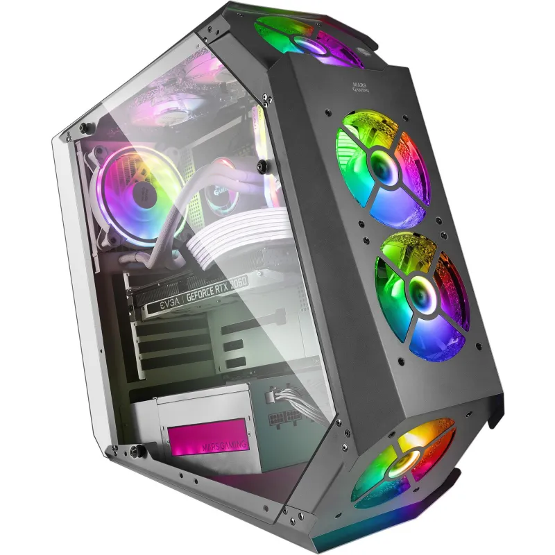 TORRE GAMING PREMIUM MC51: Diseño vanguardista y una refrigeración extrema. Con sus 5 ventiladores de 120 mm CHROMA RGB preinstalados tendrás una refrigeración extrema con un diseño futurista totalmente espectacular.