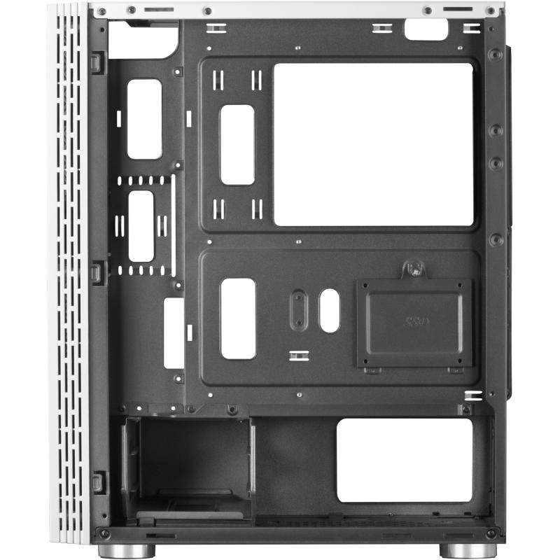 DISEÑO ELEGANTE Y ROBUSTO: Combinando la resistencia del acero con la transparencia del vidrio templado, esta pieza de ingeniería no solo resguarda tu hardware, sino que también lo exhibe con una sofisticación que atrae miradas. El color blanco, símbolo de pureza y modernidad, se convierte en el lienzo perfecto para un espectáculo luminoso que cobra vida en tonos azul, verde y rojo. Este chasis está concebido para albergar sistemas de juego de alto rendimiento, soportando tarjetas madre de formatos ATX, micro ATX y Mini-ITX. Sus siete ranuras de expansión y la capacidad de alojar múltiples dispositivos de almacenamiento convierten a esta estructura en el refugio ideal para cualquier gamer que aspire a la grandeza.