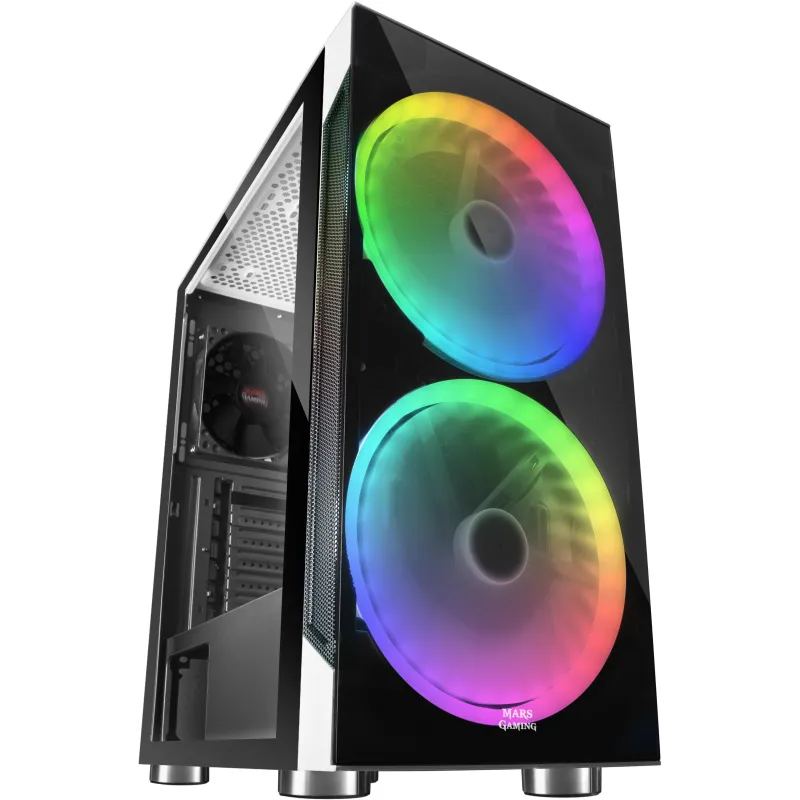 SEMITORRE GAMING MC9: La caja MC9 de Mars Gaming te ofrece todas las prestaciones óptimas para conseguir un setup gaming de primera clase, con una iluminación RGB Chroma potenciada por sistemas ARGB, ventiladores RING de 200mm y una perfecta distribución de espacio que te permite la instalación de refrigeración líquida y más componentes. Descubre todo lo que puede ofrecer la MC9 y crea tu rig ideal.