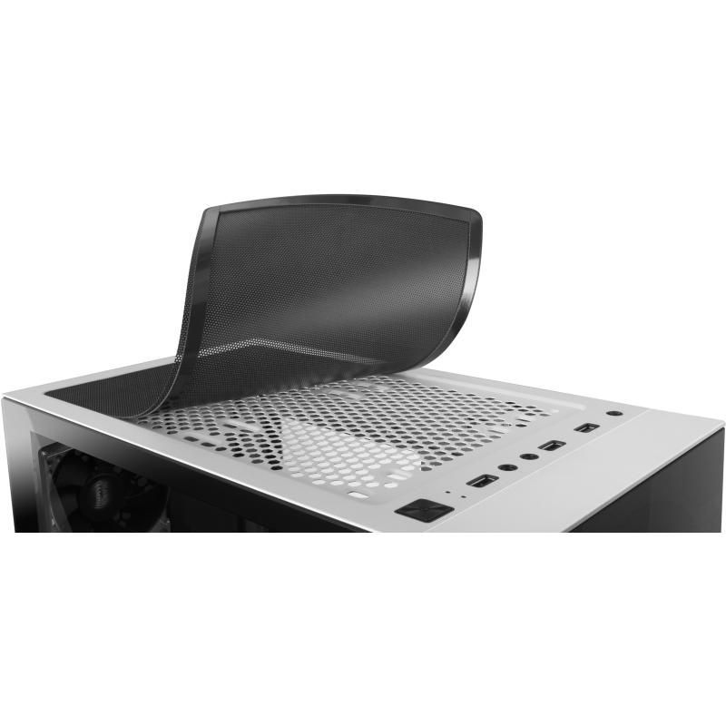 Optimizado para el enfriamiento, soporta hasta tres ventiladores frontales de 120 mm o 200 mm, un ventilador trasero incluido de 120 mm y dos ventiladores superiores de 120 mm, proporcionando un flujo de aire eficiente. También es compatible con enfriamiento líquido en los radiadores frontales (120 y 240 mm), traseros (120 mm) y superiores (120 y 240 mm), ideal para componentes de alto rendimiento. Con una altura máxima de 16,2 cm para el cooler de CPU y 33,5 cm para la tarjeta gráfica, permite instalar hardware de gran potencia sin problemas de espacio.