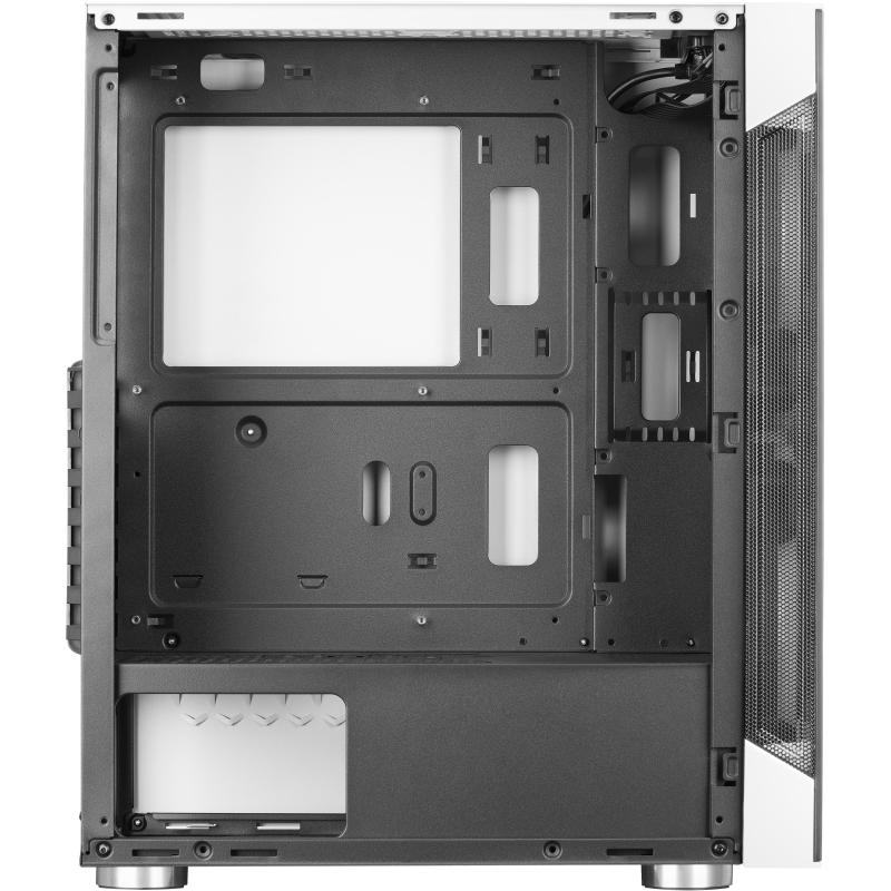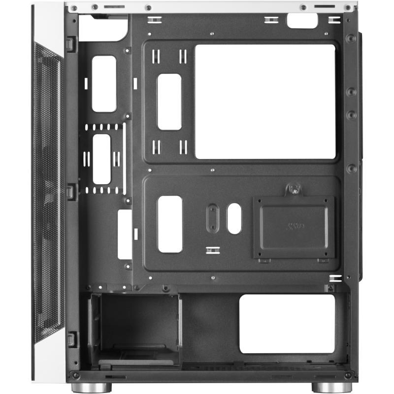 DISEÑO QUE INSPIRA: Una sinfonía visual donde el acero y el vidrio templado se encuentran para formar un cuerpo elegante y robusto. La pureza del blanco se alza como protagonista, permitiendo que la luz interior, con sus tonalidades de azul, verde y rojo, baile en una armoniosa composición. Este recinto no es solo una estructura, sino un escenario donde cada elemento cobra vida, desde las tarjetas madre ATX hasta las Mini-ITX, en un espacio que cuenta con dos puertos de 3.5" y tres bahías de 2.5", organizados con precisión para satisfacer al entusiasta del juego. Las siete ranuras de expansión son la promesa de un futuro sin límites, mientras que el panel de vidrio templado lateral ofrece una vista fascinante al corazón tecnológico del sistema.