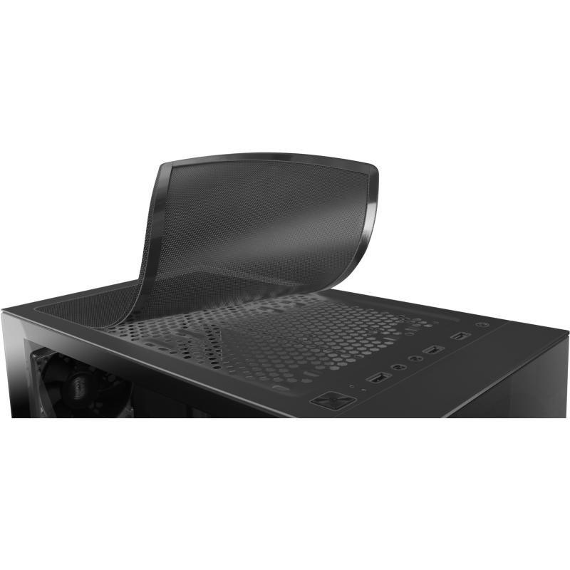 Optimizado para el enfriamiento, soporta hasta tres ventiladores frontales de 120 mm o 200 mm, un ventilador trasero incluido de 120 mm y dos ventiladores superiores de 120 mm, proporcionando un flujo de aire eficiente. También es compatible con enfriamiento líquido en los radiadores frontales (120 y 240 mm), traseros (120 mm) y superiores (120 y 240 mm), ideal para componentes de alto rendimiento. Con una altura máxima de 16,2 cm para el cooler de CPU y 33,5 cm para la tarjeta gráfica, permite instalar hardware de gran potencia sin problemas de espacio.