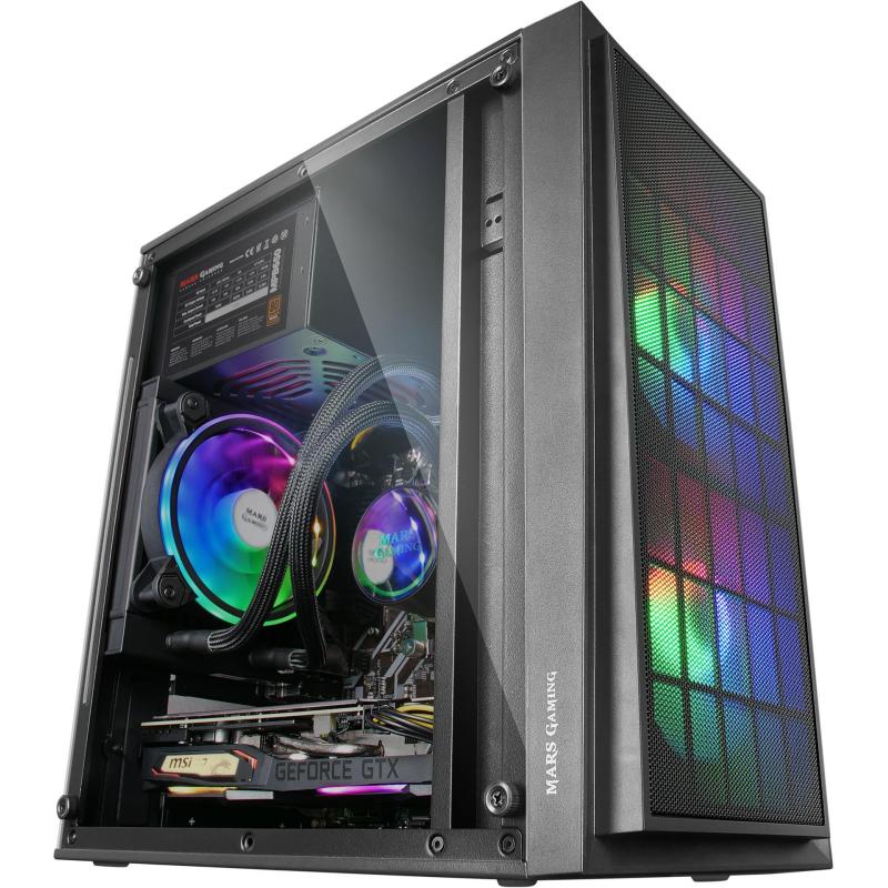 CAJA COMPACTA GAMING MCDUO: Caja compacta RGB para configuraciones Gaming de alto rendimiento en formatos MicroATX & Mini-ITX. Con una refrigeración sobresaliente gracias a sus 2 ventiladores FRGB, su panel frontal de diseño MESH y soporte para refrigeraciones líquidas.