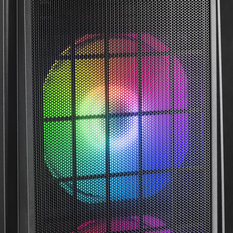 DISEÑO GAMING ESPECTACULAR: Da el salto al PC de tus sueños con la estética más cuidada hasta el último de los detalles: ventana lateral, 2x ventiladores frontales FRGB tras una rejilla metálica, controles y conexiones en la parte superior.