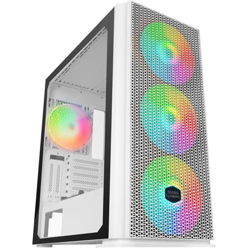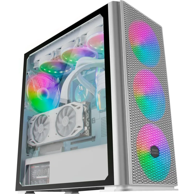 Torre Mars Gaming MCPRO Cristal Templado USB 3.0 7 Ventiladores Soportados 3 Ventiladores Frontales Instalados 1 Ventilador Trasero Instalado Blanca