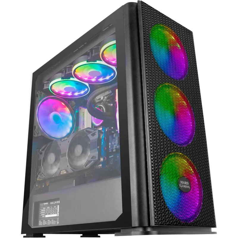 Torre Mars Gaming MCPRO Cristal Templado USB 3.0 7 Ventiladores Soportados 3 Ventiladores Frontales Instalados 1 Ventilador Trasero Instalado Negra