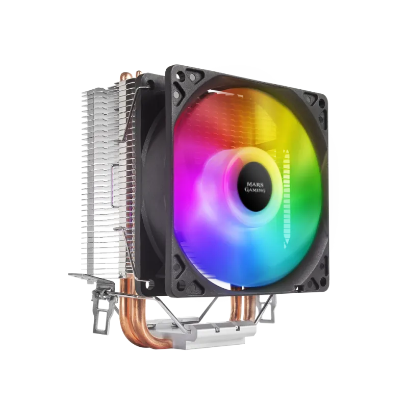 REFRIGERA TU CPU CON ESTILO: Si quieres mantener tu ordenador fresco y con una iluminación espectacular, necesitas un ventilador que combine un gran rendimiento con un diseño atractivo. El nuevo ventilador CPU RGB de Mars Gaming es lo que estás buscando: un disipador de calor con dos heatpipes de cobre y un ventilador de 9 cm con iluminación CHROMA RGB automática. Podrás disfrutar de tu PC al máximo sin preocuparte por el sobrecalentamiento ni por el ruido.