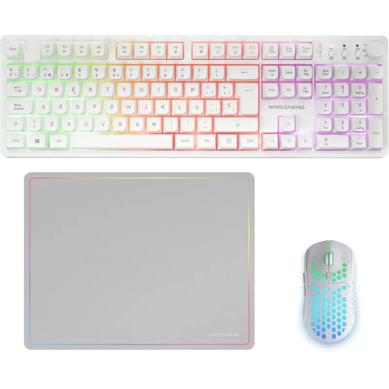 Mars Gaming MCPWXWES Combo Inalambrico Gaming 3en1 RGB Blanco