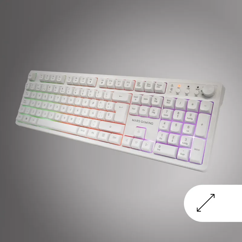 El Kit de Teclado y Ratón Mars Gaming MCPWXWES no solo destaca por su funcionalidad, sino también por su estética cuidada. Su acabado en blanco monocromo y su estructura de ABS sintético ofrecen una apariencia moderna y resistente. La retroiluminación LED RGB multicolor proporciona una experiencia visual envolvente, permitiendo personalizar el entorno de juego con distintos efectos de luz. Este teclado está diseñado para ofrecer comodidad durante largas sesiones, gracias a su formato completo y diseño ergonómico. La inclusión de teclas multimedia y de acceso rápido mejora la eficiencia en el uso diario. Además, su base antiderrapante y el interruptor de encendido/apagado integrado aportan estabilidad y control total. La combinación de estética y funcionalidad lo convierte en una herramienta esencial para cualquier jugador.