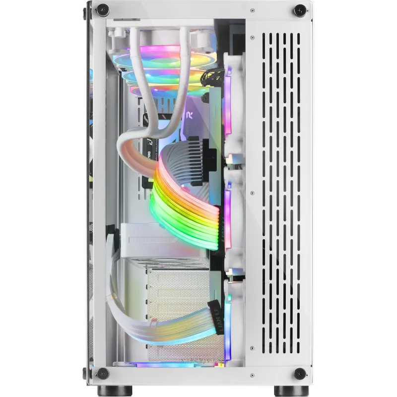 DESCUBRE EL PODER DEL DISEÑO: Con una imponente presencia en su forma de torre, la elegancia se viste de blanco para redefinir el espacio donde la tecnología se encuentra con el arte. Este contenedor de innovación es compatible con las tarjetas madre ATX, micro ATX y Mini-ITX, proporcionando una flexibilidad que se adapta a tus necesidades creativas. Dos puertos de 3.5” y cuatro bahías de 2.5” aseguran que cada componente encuentre su lugar, mientras que nueve ranuras de expansión abren un abanico de posibilidades para elevar tu experiencia de usuario a nuevas alturas. La ventana lateral, con su panel de vidrio templado, no solo ofrece una vista impresionante de su interior, sino que también transforma la tecnología en un espectáculo visual. Con una altura máxima para el refrigerador de la CPU de 13.8 cm y una longitud máxima para la tarjeta gráfica de 37 cm, este diseño no solo se adapta, sino que anticipa el futuro de la personalización.