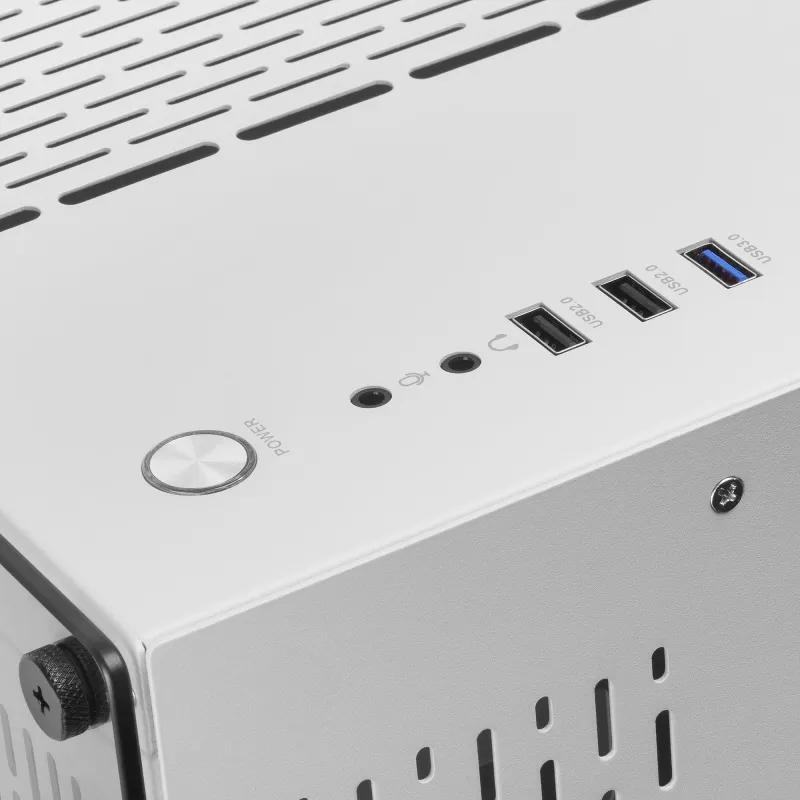 ESTRUCTURA DE DOBLE CÁMARA: Separa la fuente de alimentación y los discos duros en una cámara lateral oculta para una máxima refrigeración y optimización del espacio.