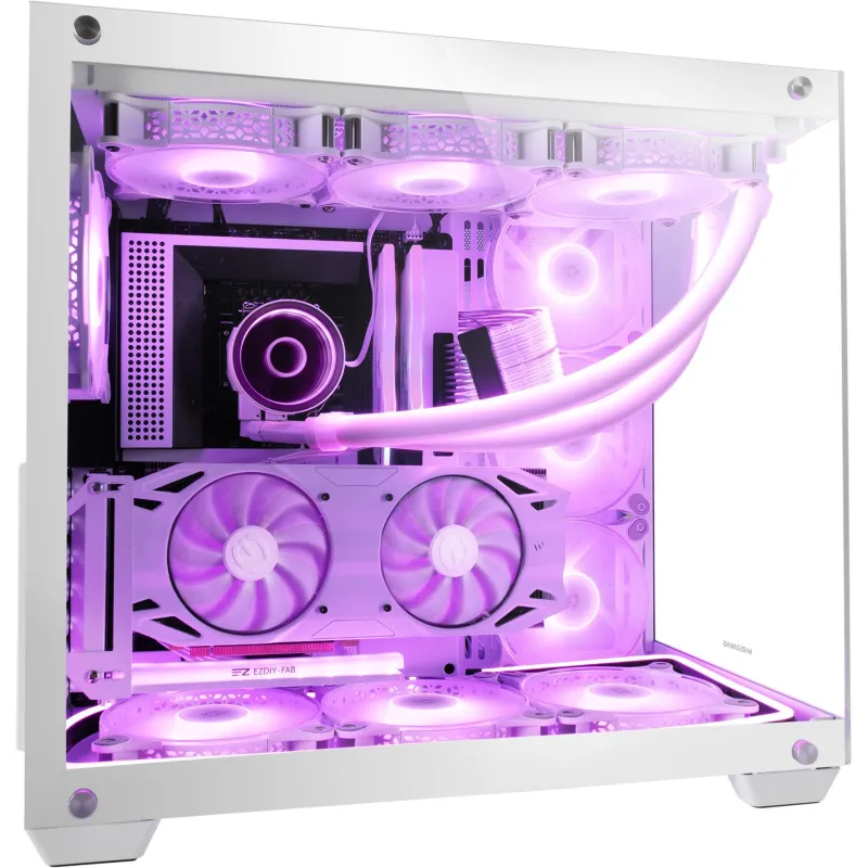 Este chasis de formato torre ofrece un diseño versátil y atractivo en color blanco, ideal para sistemas de juego de alto rendimiento. Su compatibilidad con placas madre ATX, EATX, micro ATX y Mini-ITX lo convierte en una solución flexible para configuraciones variadas. Equipado con dos bahías de 3.5" y tres bahías de 2.5", permite múltiples opciones de almacenamiento. Sus siete ranuras de expansión y la presencia de una ventana lateral ofrecen una experiencia visual impactante, acentuada por paneles de vidrio templado que destacan el hardware interno.
