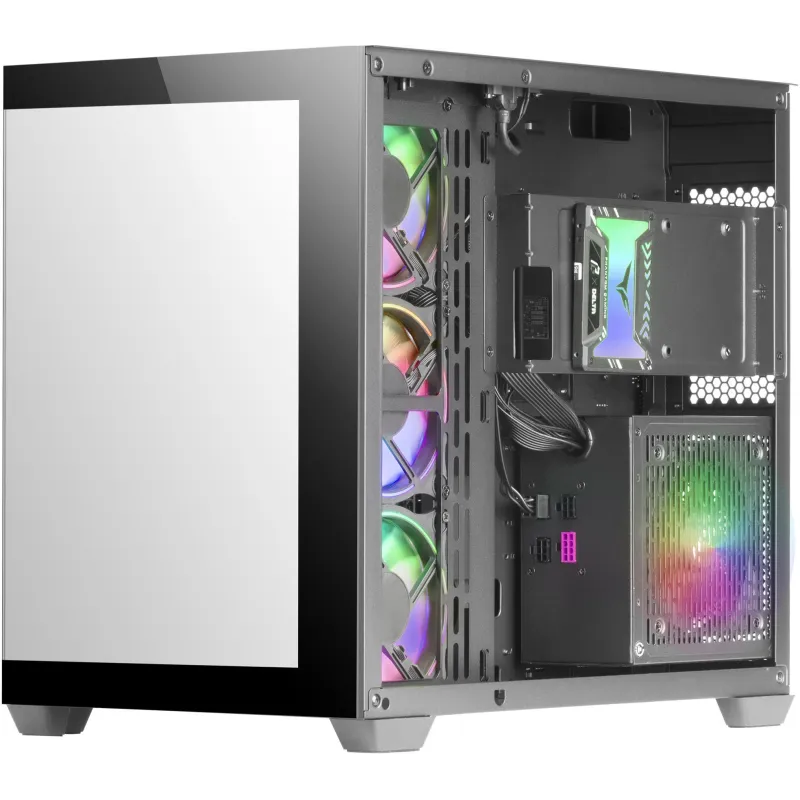 ENFRIAMIENTO EFICAZ: Diseñado para mantener la temperatura bajo control, soporta ventiladores frontales de hasta 140 mm y traseros de 120 mm, asegurando una circulación de aire óptima. La posibilidad de integrar un sistema de enfriamiento líquido añade un nivel adicional de control térmico, perfecto para quienes buscan llevar el rendimiento al límite sin preocuparse por el calor.