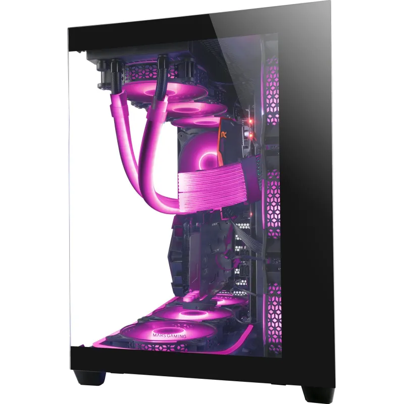 TORRE GAMING CUSTOM PREMIUM XXL MCV4: Cristal templado continuo sin marco, tamaño XXL E-ATX para las configuraciones más exclusivas. Con soporte hasta 10 ventiladores y refrigeraciones líquidas triples en varias posiciones.