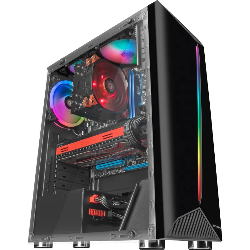 TORRE DE JUEGOS: Concebido con precisión para satisfacer las demandas del gaming moderno, su factor de forma tipo torre es la base idónea para construir un sistema que no solo cumpla con los requisitos técnicos, sino que también ofrezca una experiencia inmersiva. Cada componente ha sido meticulosamente considerado para maximizar el rendimiento y minimizar las interrupciones, permitiendo a los jugadores sumergirse completamente en sus mundos virtuales.