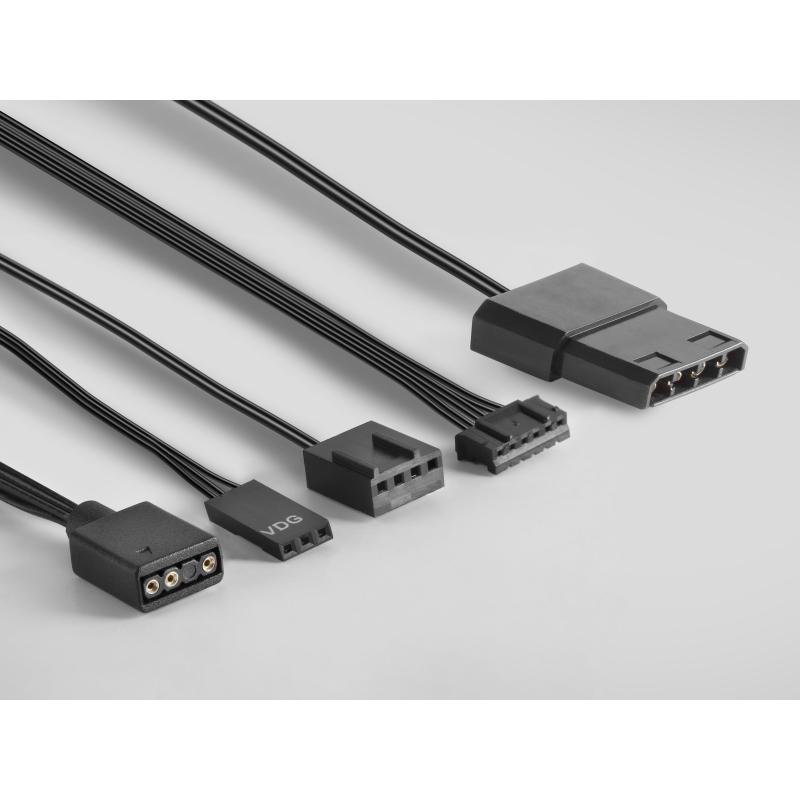 Permite una increíble variedad de posibilidades de conexión: directamente a la placa base o a la fuente de alimentación para un efecto CHROMA RGB automático, a controladores ARGB con conectores de 3 o 6 pines, y con placas base Addressable RGB con sistemas Asus Aura Sync, Mystic Light Sync o RGB Fusión, permitiéndote un absoluto control de la iluminación y una libertad absoluta para cualquier uso.