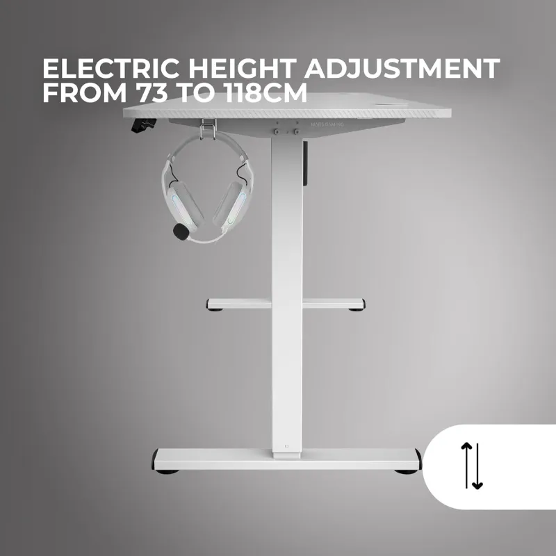 Escritorio para PC Mars Gaming MGD-ERGOPRO160 Blanca con altura regulable , con capacidad de carga 60 kg , fabricada en fibra de carbono y con diseño ergonómico