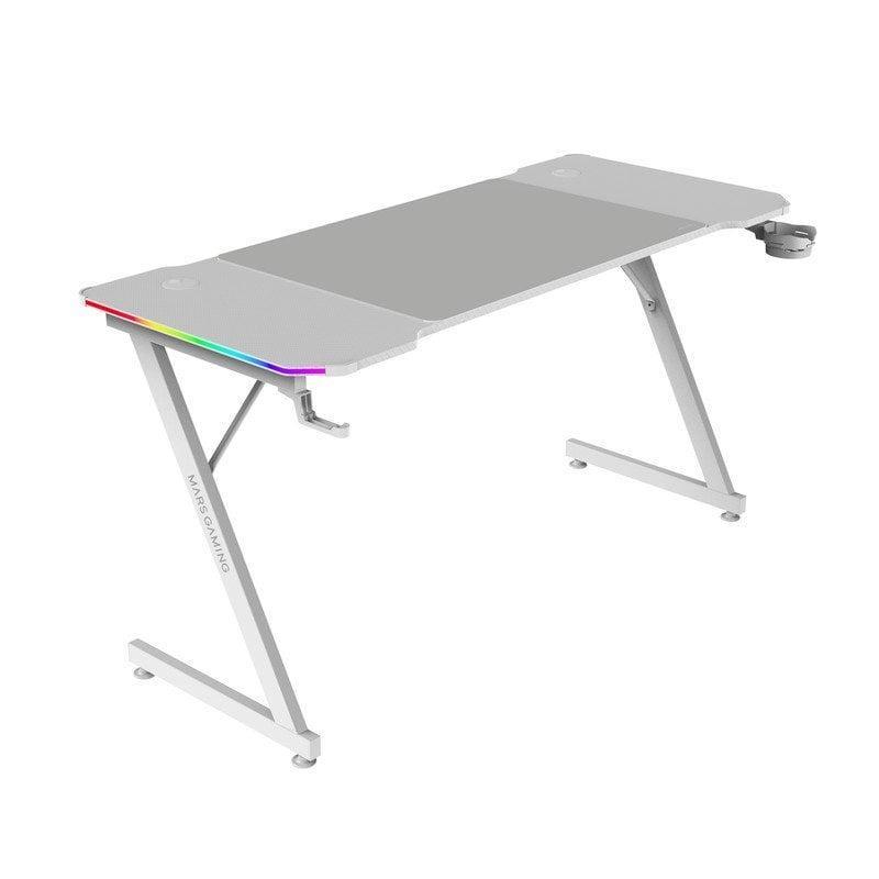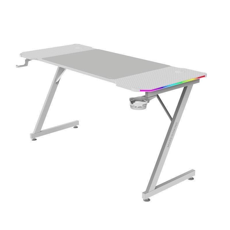 Escritorio para computadoras Mars Gaming MGD-X140RGB diseño ergonómico fibra de carbono luces RGB, color Blanco