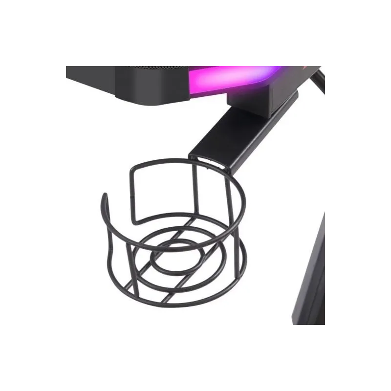ACCESORIOS QUE ELEVAN TU JUEGO: No es simplemente un escritorio; es un ecosistema cuidadosamente diseñado para mejorar tu experiencia gaming. Equipado con soportes para cascos y botellas, este escritorio se adapta a tus necesidades. Además, la gestión de cables integrada garantiza un entorno ordenado, permitiéndote concentrarte en lo que realmente importa: tu juego.