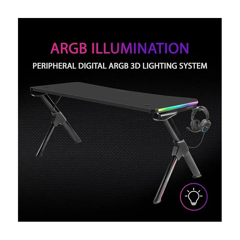 ORGANIZACIÓN SIN ESFUERZO: La gestión de cables integrada te permite mantener tu espacio de juego ordenado y libre de distracciones. Los discretos pasacables aseguran que tus dispositivos estén conectados de manera eficiente, mientras que el gancho integrado para auriculares mantiene tus accesorios al alcance, listos para la acción. Este escritorio no solo potencia tu juego, sino también tu organización.