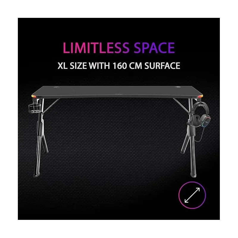 ESPACIO SIN LÍMITES: Con sus 160 cm de superficie, no renunciarás a nada para construir el setup de tus sueños. 3 monitores, PCs extragrandes sobre la mesa, múltiples periféricos, mesas de mezclas... todo tendrá cabida en la mesa gaming más extrema.