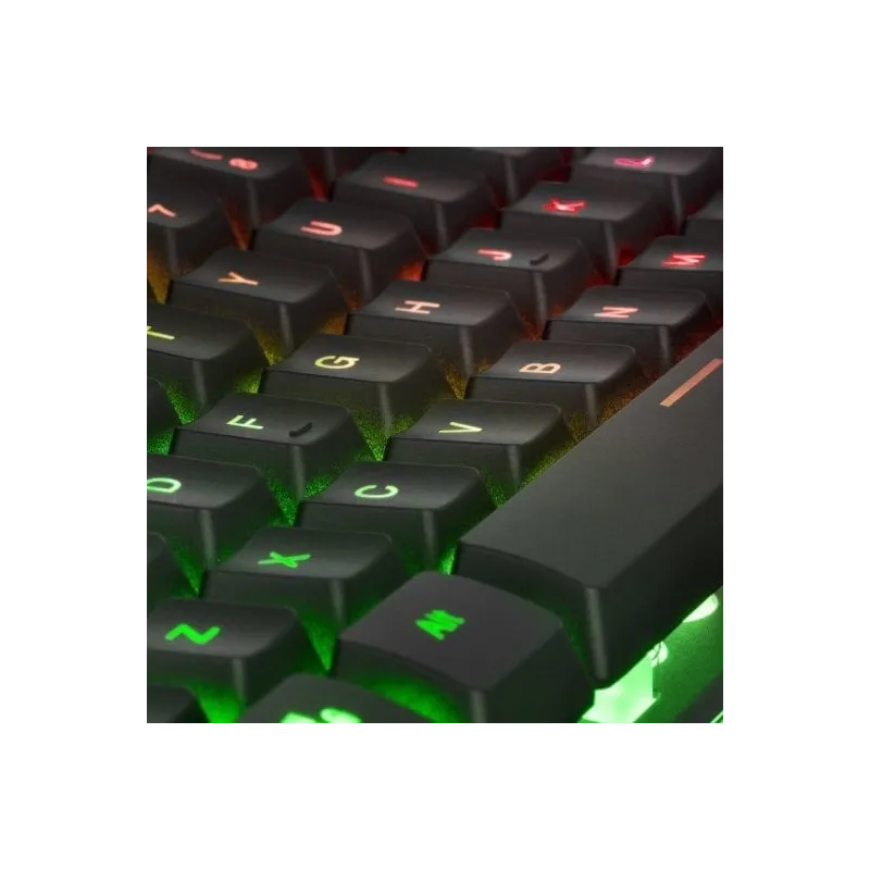 DISEÑO Y PRESTACIONES AVANZADAS: El MK220 ofrece un diseño espectacular con prestaciones ergonómicas increíbles, gracias a una elevación óptima de las teclas diseñada para conseguir la mayor comodidad mientras juegas. Además, consigue un aspecto único a través de su sistema de iluminación FRGB Rainbow en las teclas y Halo periférico.