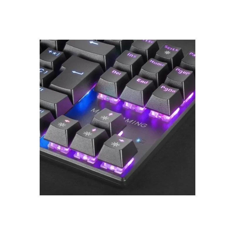 TECLADO GAMING MECÁNICO MK80: Tamaño compacto TKL con tecnología mecánica antipolvo de larga duración y resistencia, 12 efectos de iluminación rainbow RGB, teclas ultrarresistentes imborrables de doble inyección, funciones multimedia y modo juego, PR de 1000Hz y Anti-ghosting avanzado. Gracias a sus prestaciones, el MK80 garantiza un rendimiento excepcional en un tamaño optimizado. Todo ello con la máxima compatibilidad multiplataforma.