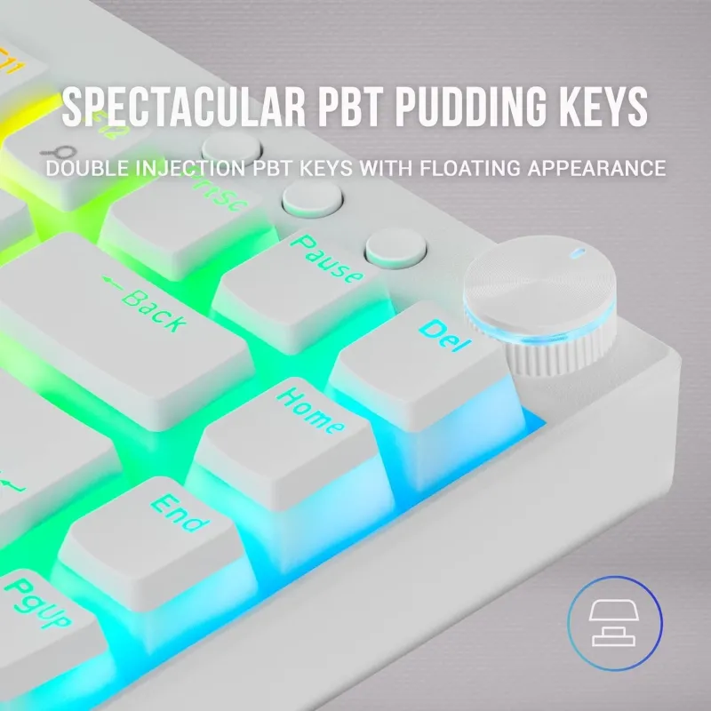 ESPECTACULARES TECLAS PBT PUDDING: Fabricadas en ultra resistente PBT de doble inyección en dos niveles, las teclas del MKCLOUD te ofrecen un espectáculo de iluminación sin precedentes en el que las teclas parecen flotar sobre una base de luz y color. Además, el PBT es un material mucho más resistente y refinado que el ABS tradicional por lo que las teclas se mantendrán como nuevas tras años de uso intensivo. Olvídate para siempre de los desgastes y las roturas.