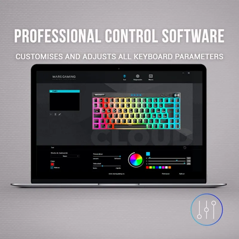 SOFTWARE DE CONTROL PROFESIONAL: Hay un MKCLOUD para cada tipo de jugador: no sólo podrás elegir el tipo de switch y el color del teclado, además su software de control ofrece múltiples posibilidades para que personalices tu experiencia como más te guste, permitiéndote ajustar todos los parámetros de tu teclado a tu medida, desde su iluminación hasta la creación de macros especializadas.