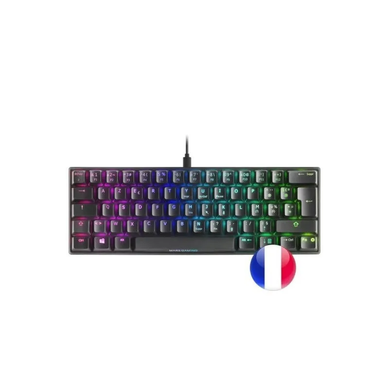 Mecánico - Número de teclas: 61 - Diseño de teclado: AZERTY - Idioma del teclado: Francés - Conectividad: Cable USB-A - Retroiluminación: Si - Longitud de cable: 1,5 m