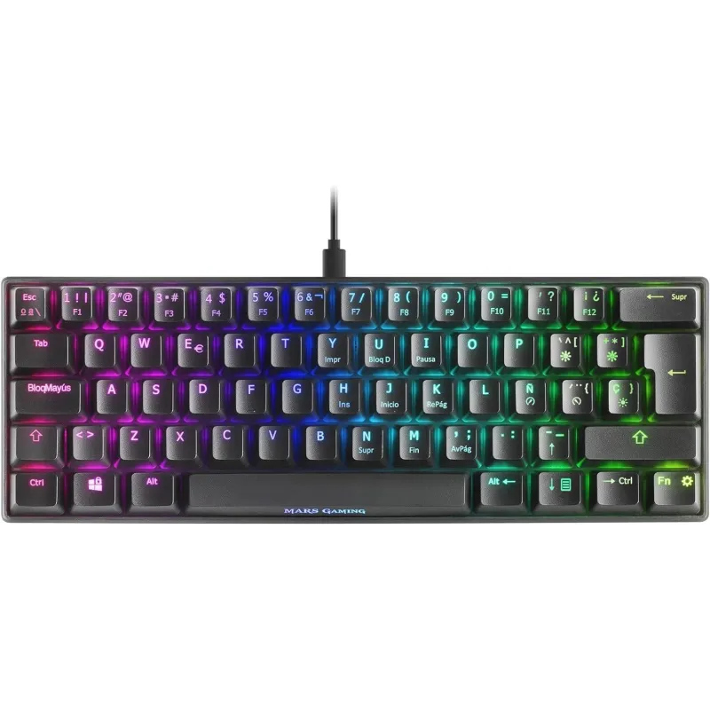 Mecánico - Número de teclas: 61 - Diseño de teclado: QWERTY - Idioma del teclado: Español - Conectividad: Cable USB-A - Retroiluminación: Si - Longitud de cable: 1,5 m